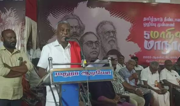 பின்னர், அம் மாநாட்டில் பேசிய சண்முகம், பஞ்சமி நில் என தமிழ்நாடு அரசு இதுவரை கண்டறிந்துள்ள 2.5 லட்சம் ஏக்கர் நிலத்தை மீட்டுத்தர நடவடிக்கை எடுக்க வேண்டும். பஞ்சமி நிலத்தை மீட்டு நிலமற்ற பட்டியல் சாதியினருக்கு ஒப்படைக்க வேண்டும் என்று வலியுறுத்தினார்.