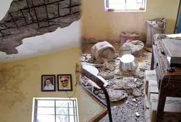 இன்று ரேஷன் கடை திறக்கப்பட்டு வழக்கம்போல பொருள்களை விற்பனை செய்து கொண்டிருந்தபோது, மேற்கூரை கான்க்ரீட் பெயர்ந்து விழுந்தது. இவ்விபத்தில், பொருள்களை எடுத்து கொடுத்துக் கொண்டிருந்த உதவியாளர் சௌரிராஜன் தலையில் பலத்த காயம் ஏற்பட்டது.