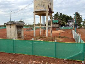 கோவில் நிர்வாகக் குழுவினர் ஊராட்சி மன்ற தண்ணீர் தொட்டியையும் உள்ளடக்கி வேலி போட்டனர்.