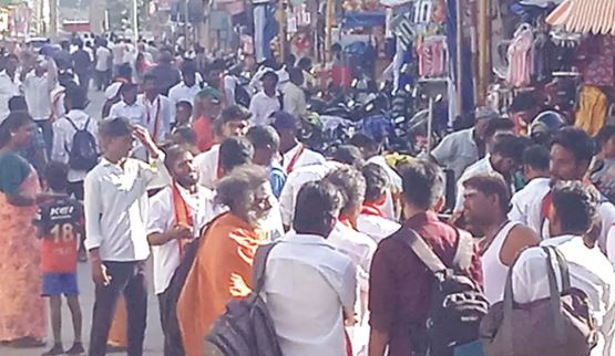 திருப்பரங்குன்றம் கோவிலில் அண்மையில் கும்பாபிஷேகம் நடைபெற்றது. 48 நாள்கள் மண்டல பூஜை நடைபெற்றுவரும் நிலையில் நாள்தோறும் உள்ளுர் பக்தர்களின் கூட்டம் அதிகமாக உள்ளது. இந்நிலையில், த.வெ.க.வினரும் சாமி தரிசனம் செய்ய குவிந்ததால் கோவிலில் கூட்டம் அலைமோதியது.