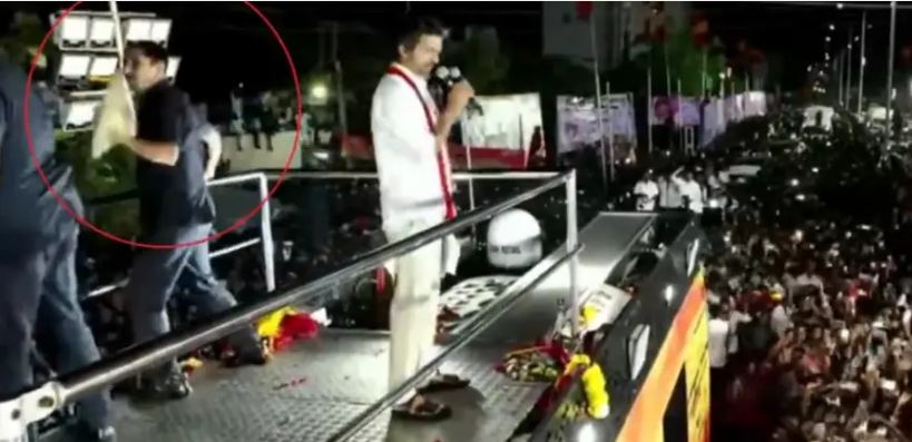 இந்நிலையில், செப்.27 அன்று கரூர் வேலுச்சாமிபுரத்தில் நடைபெற்ற பிரசாரத்தின்போது விஜய் மீது செருப்பு வீசப்பட்டதாக வீடியோ வெளியாகி உள்ளது. இக் கூட்டத்திலும் பாதுகாப்பு குளறுபடிகள் இருந்துள்ளன.